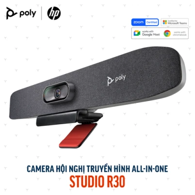 HP Poly Studio R30 là sản phẩm USB Camera All-in-one dạng thanh dành cho phòng họp nhỏ được tích hợp bộ tính năng DirectorAI độc quyền của Poly (nay là một phần của HP). Poly Studio R30 mang đến trải nghiệm hình ảnh tuyệt vời cũng như chất âm đặc trưng của Plantronics và Polycom trước đây.