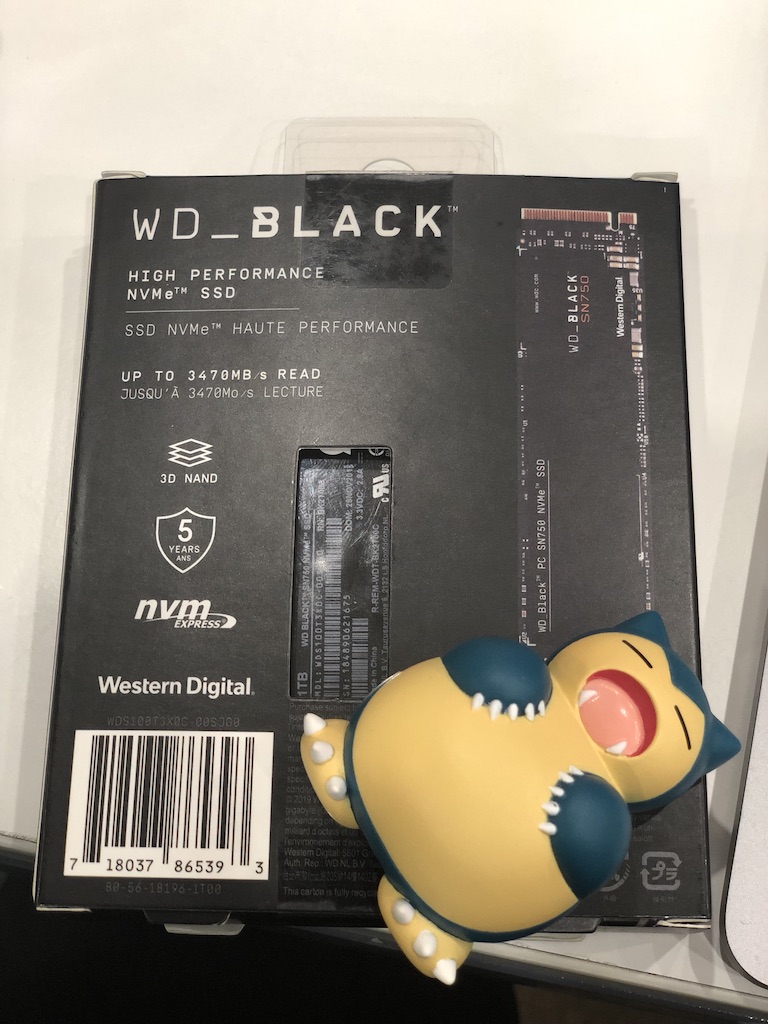 Hộp của WD-Black SN750 được thiết kế với 1 màu đen khá bắt mắt và cao cấp trùng màu với sản phẩm phía trong. Phiên bản mà GameTV trên tay có dung lượng 1TB cùng tốc độ đọc cực kì ấn tượng: 3470MB/s.