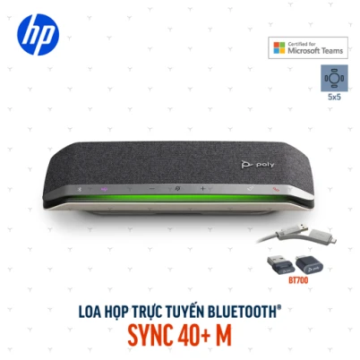 HP Poly Sync 40+ là phiên bản nâng cấp của Sync 40 với Adapter USB Bluetooth BT600 hoặc BT700 đi kèm là sản phẩm loa hội nghị cho phòng họp tầm trung của hãng Poly (trước đây là Plantronics, nay là một phần của HP). Có khả năng mở rộng phạm vi thu âm cho các phòng họp nhờ tính năng kết nối Daisy-chain lên đến 2 unit Poly Sync 40.